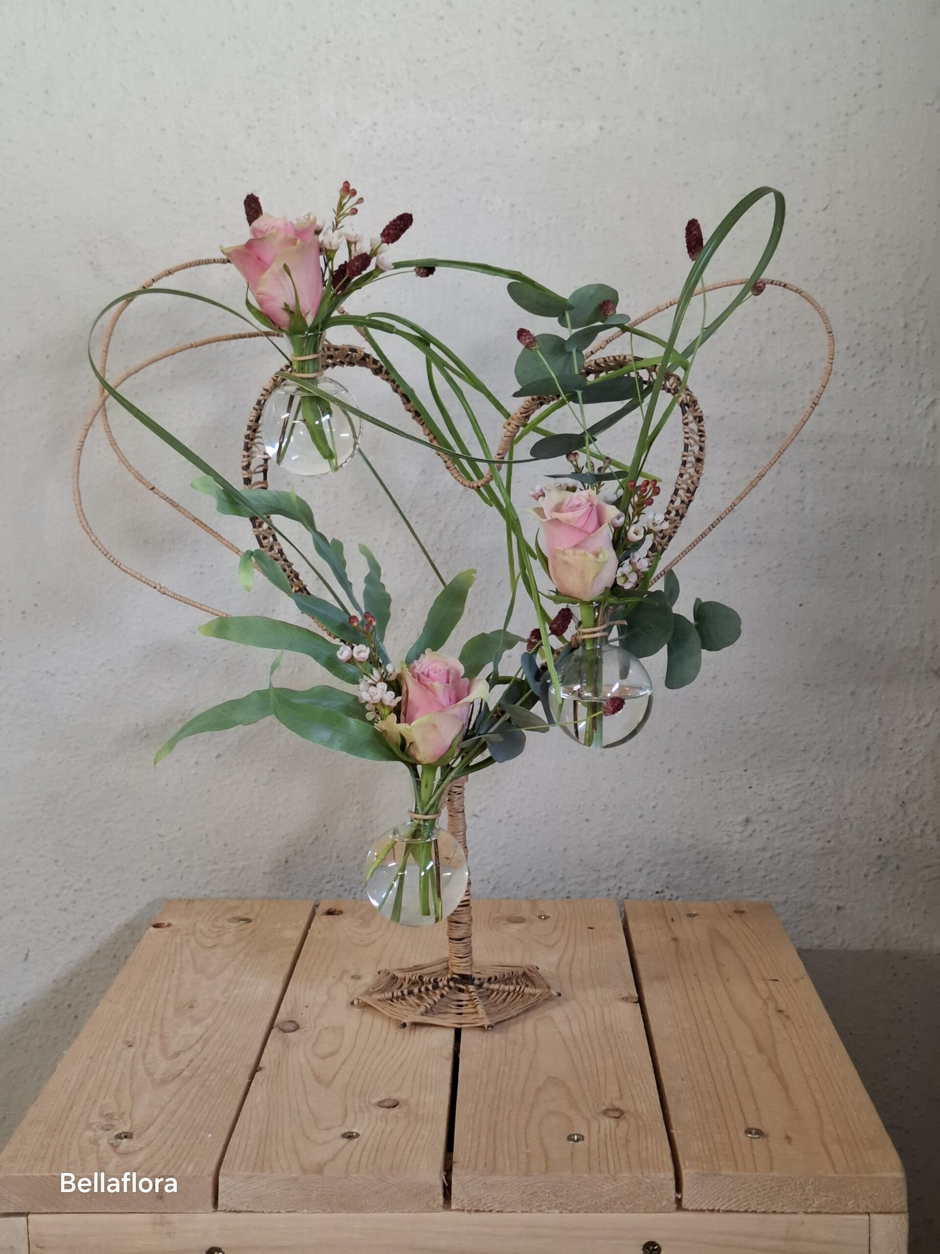 Van deze leuke creatie geniet je lang, je kan de vaasjes steeds opnieuw vullen met materiaal van het seizoen.